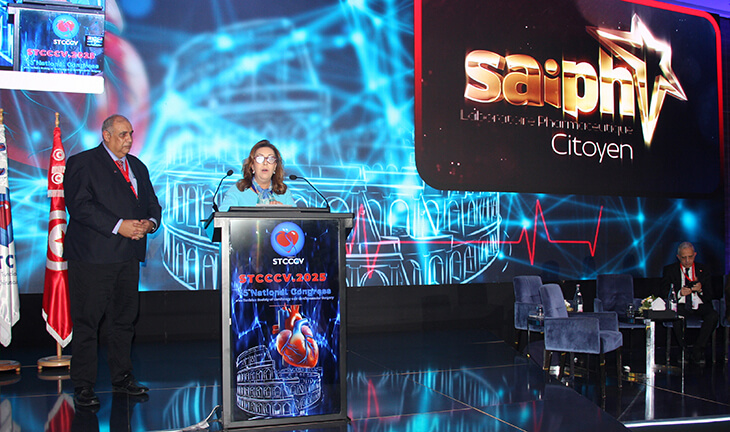 Je voudrais rappeler que cette initiative est le fruit d’une triple alliance visionnaire : celle du Ministère de la Santé, de la Société Tunisienne de Cardiologie et de Chirurgie Cardiovasculaire (STCCCV), et des Laboratoires SAIPH.